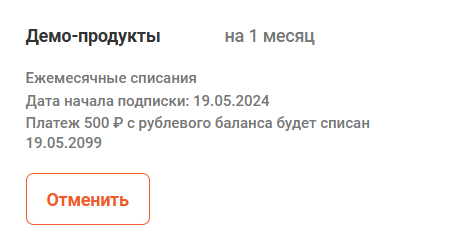 Активация подписки: Профиль - Демо-продукты, выбор способа оплаты - Активировать. Это функция, которая позволит Вам создавать бесплатные продукты, а так же создавать демо-уроки в курсах. Обратите внимание, списание денежных средств с карты, баланса или Mone будут происходить ежемесячно автоматически.
